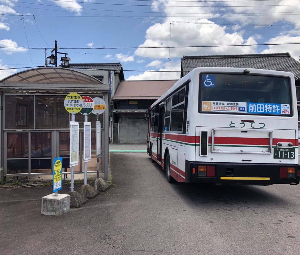 駅を出るとすぐにバス停があり、YAOバスが停まっていました。乗客は私以外誰もいませんでしたが無事乗車できました。途中で数人乗車しては降りていきました。