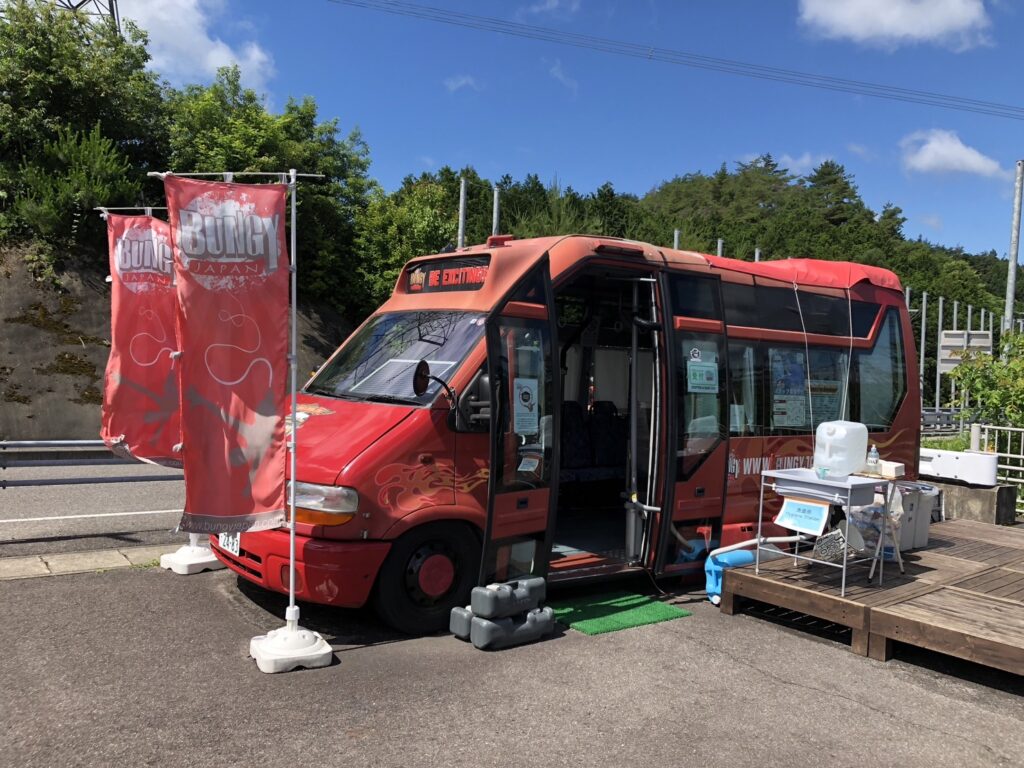 運転手さんとお話ししながら、10分ほどでバンジー受付駐車場に到着しました。クレカは使えなかったので現金支払いで約3000円でした。