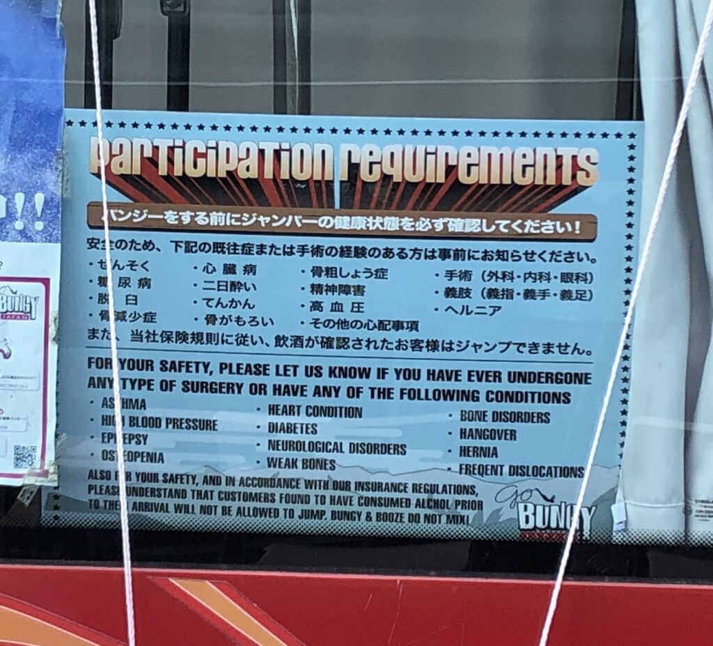 タクシーの運転手さん曰く、昨日もバンジーのお客さんを乗せたそうです。運転手さん自身は絶対バンジーやらないと言っていました(笑)