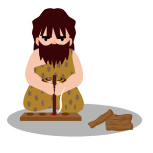 ※下記のイラストはロープではなく手で火起こしをしていますが、ロープの方が少ない力・短時間で火をおこすことができます